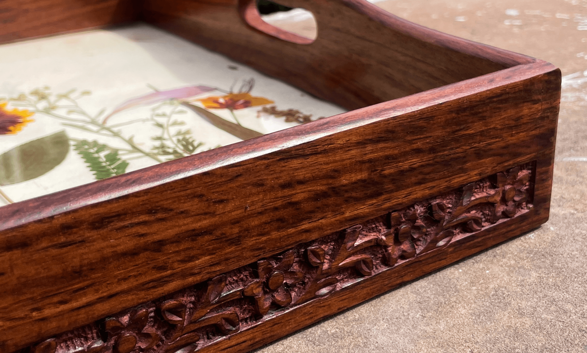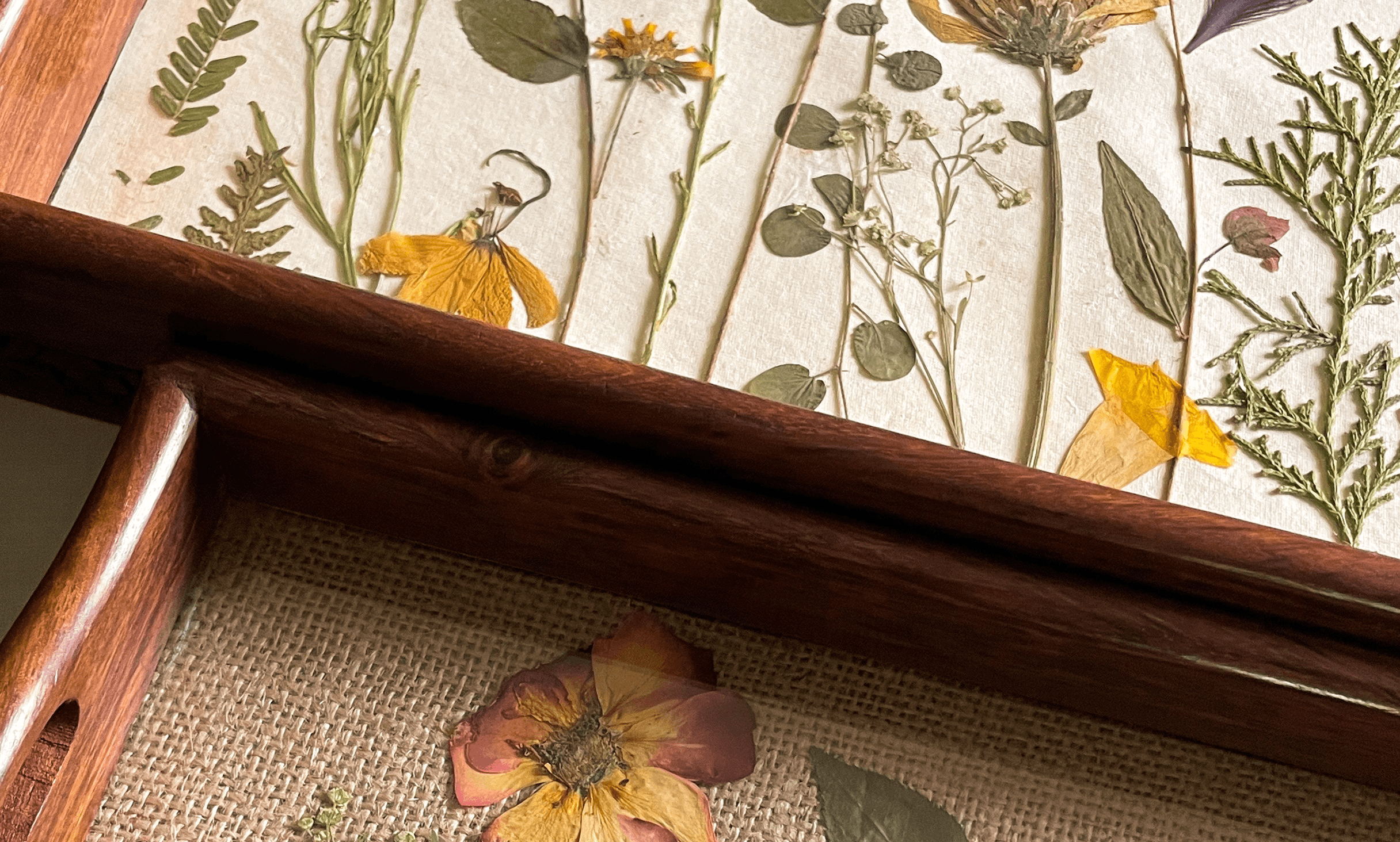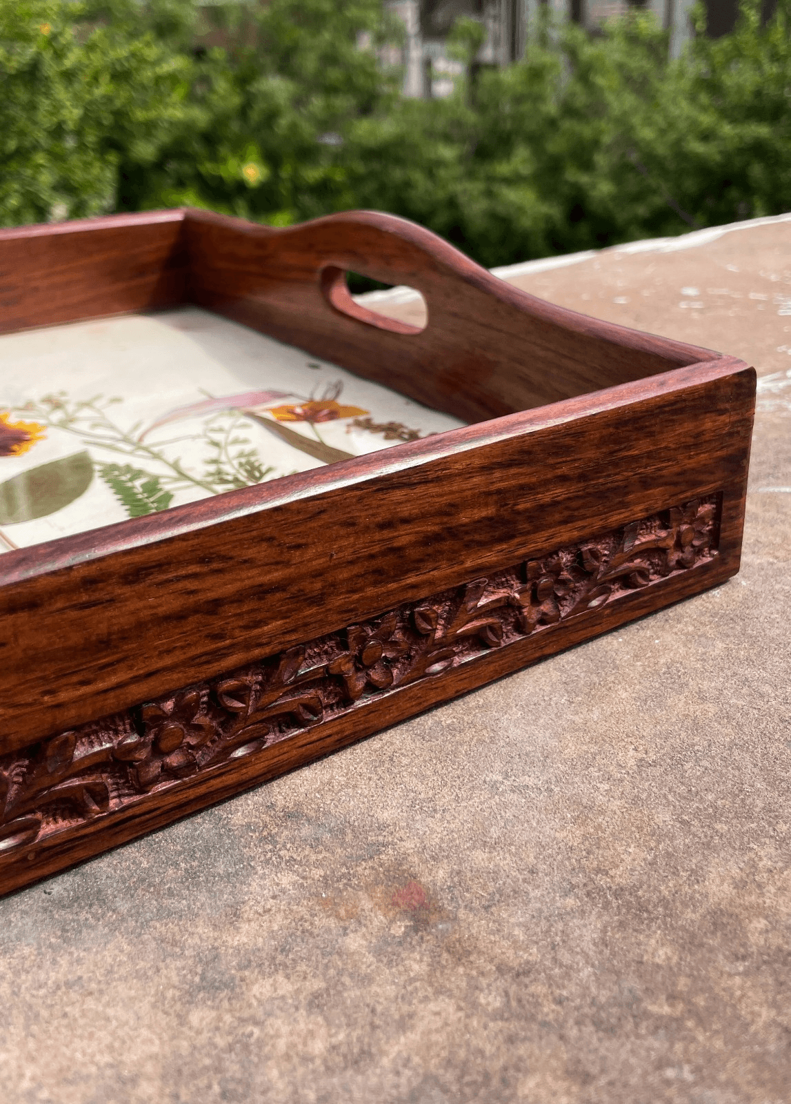 Designed to celebrate the beauty of nature, Features pressed flowers sealed in Sheesham wood creating a lasting piece of art, combining natural elements with craftsmanship, ideal to elevate any space.