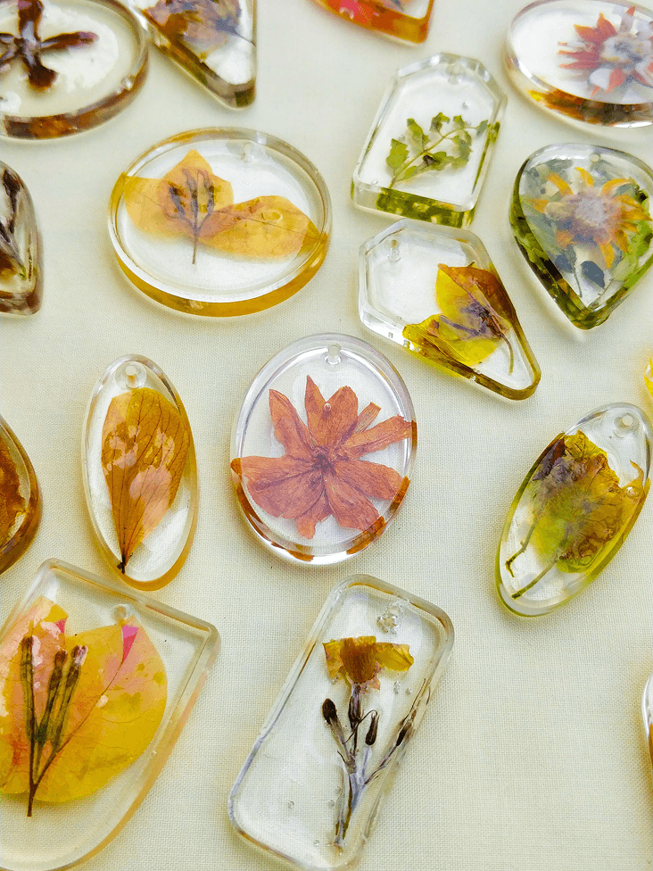 Handmade resin accessories with real, dried flowers with an aim to preserve