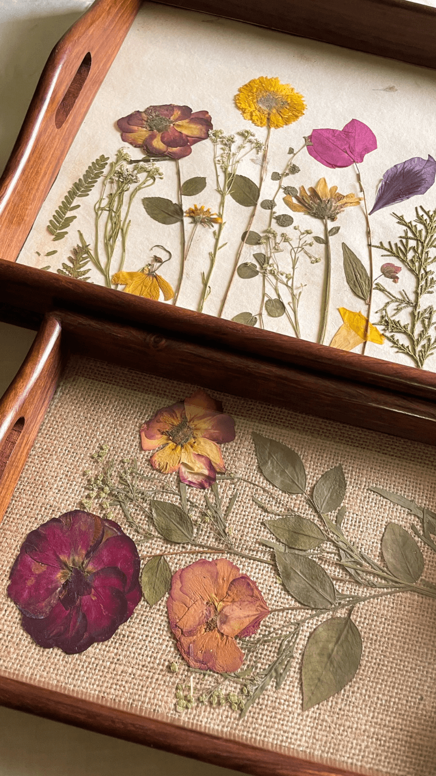 Fiore started as a Lockdown experiment turned into a passion project, which is a space of exploration with dried flowers in different materials. The flora and fauna at my home are my inspiration and an escape from hectic work schedule and amongst their adobe